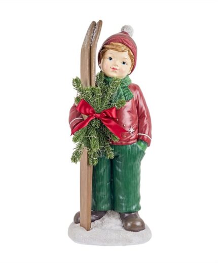 Декоративная фигурка с ЛЭД «Мальчик с лыжами»
