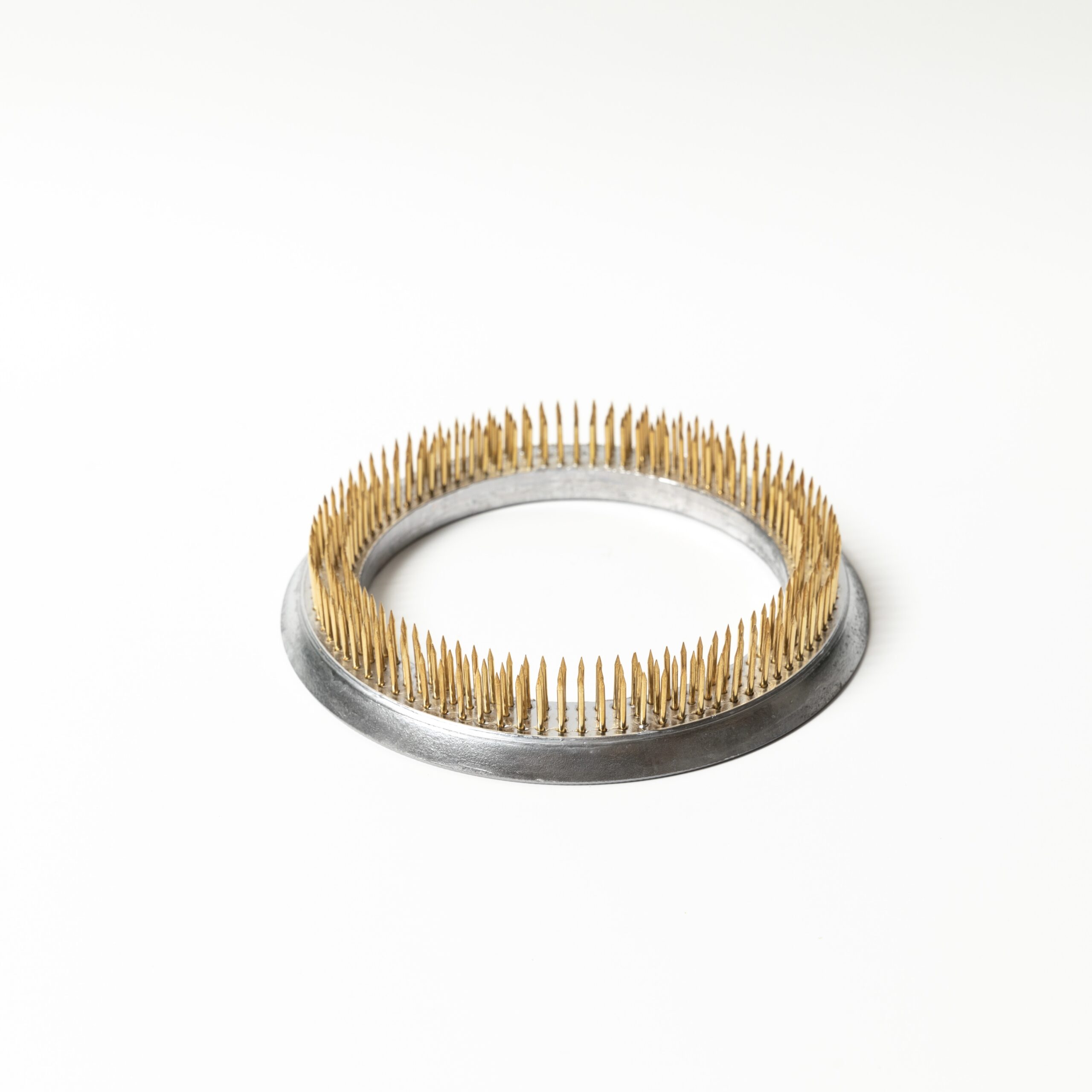 Кензан «кольцо» с основанием из свинца иглами из латуни. Диаметр 123 мм. Высота игл 12 мм. Вес 470 г. Подходит для средних и маленьких композиций.
